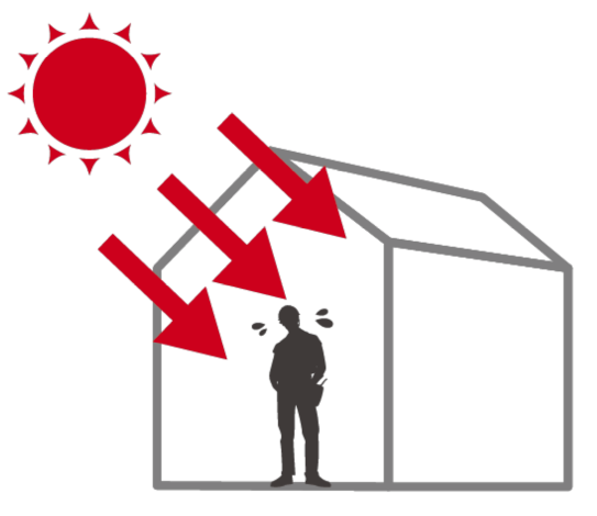 機械からの輻射熱は、工場内の室温を上昇させたり、人体の温度を上昇させるため、暑さを感じる原因に。