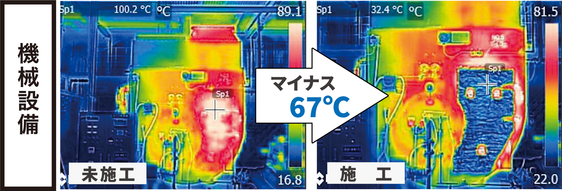 工場内の機械にIS遮熱シートを施工することで、機械から発せられる輻射熱を抑える効果があり、機械熱による作業環境への影響を改善できます。