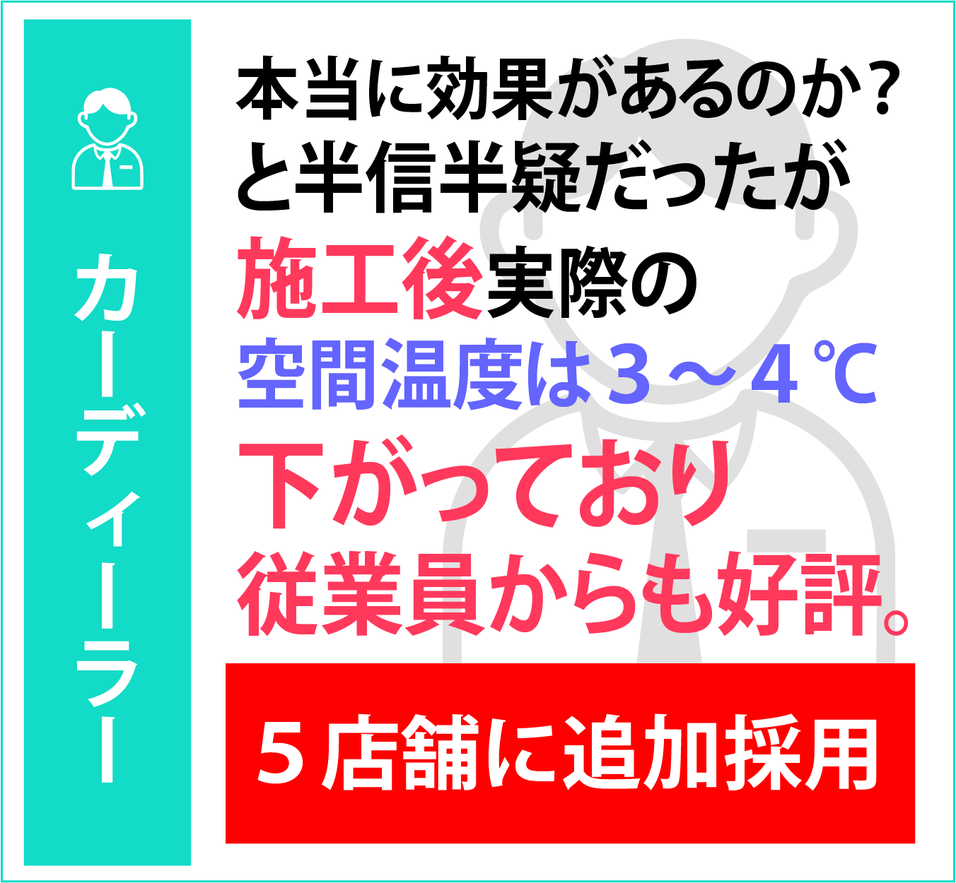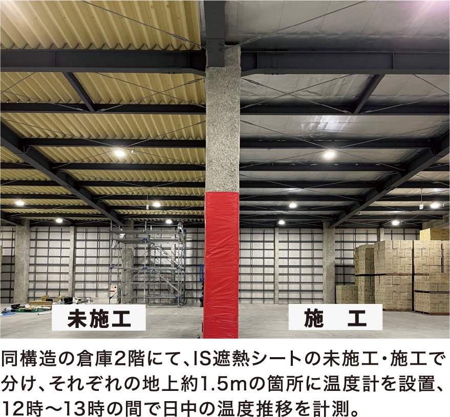 ※屋根下にIS遮熱シートを施工6月〜9月(8時間/日)で計測。